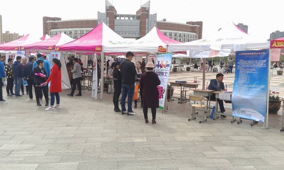 4月9日上午,50多家企业在学校水上广场举办了2017年滨州市“青春扶贫,送岗位进校园”大学生专场招聘会,qy球友会组织该院应届毕业生参加。