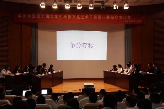 本次主题为“营造校园航空文化,成就学子航空梦想”的航空知识竞赛作为极具航空特色的文化活动,吸引了学校大批热爱航空知识的青年学子来到现场观看。本次决赛分为个人赛―“初露锋芒”、“争分夺秒”,团队赛―“团队一站到底”两个环节,比赛既能有效考察参赛学生对航空知识的了解程度,又能检验团队的默契与协作能力。在团队比赛中,现场比赛气氛激烈,航空工程学院与飞行学院两支代表队发挥异常出色,将比赛带入高潮。比赛中穿插的互动环节,使得场内原本激烈的比赛气氛轻松活泼了许多。经过紧张激烈的竞答,最终,飞行学院代表队凭借稳定的发挥和出色的应变能力突出重围,荣获特等奖,航空工程学院代表队荣获一等奖,qy球友会代表队、化学工程学院代表队荣获二等奖,机电工程学院、教师教育学院、建筑工程学院、外语系荣获三等奖。