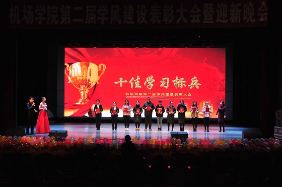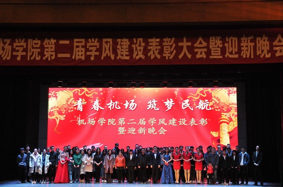 12月24日晚,qy球友会“青春机场,筑梦民航”第二届学风建设表彰大会暨迎新晚会在我校学苑会堂隆重举办。学院党总支书记董克勇老师、学生工作处副处长代林老师、校团委副书记于峰老师、学院副院长韩春燕老师、院长助理柳明老师等应邀出席晚会,并为获奖代表颁奖。qy球友会全体师生以及来自全校各院系的受邀师生代表八百余人参加了晚会。