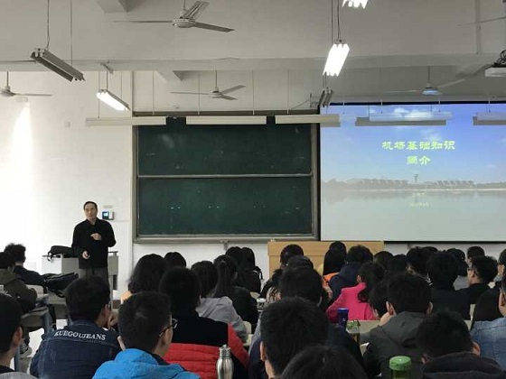 韩院长首先传达了认知实习工作方案,并对实习环节中的注意事项、实习报告的撰写做了说明。她要求所有实习同学要积极配合学院完成本次实习工作,要认真听取相关企业实习安排,遵守实习纪律,认真完成实习报告,并要求同学们要保持良好形象,展现qy球友会学子的良好精神风貌。随后汪明杰顾问为同学们做了有关机场概况方面的报告。他向同学们详细介绍了国际民航公约组织,让同学们对民航在国际中的地位有了进一步认识,汪顾问同时结合自身工作经历重点介绍了与机场有关的基础知识以及机场管理的范围与内容,包括飞机的起降与停放、人员上下以及货物装载等,使同学们对机场运行有了初步了解。