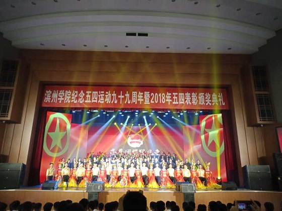 5月3日晚,我校在学苑会堂隆重举行了“高举团旗跟党走”——滨州学院纪念五四活动九十九周年暨2018年五四表彰颁奖典礼。学校党委书记、校长刘春华,党委副书记宋淑平等出席本次典礼并为受表彰的先进集体和个人颁奖。qy球友会30余名优秀团员代表参加了本次颁奖典礼。