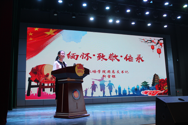 学苑会堂灯光照耀,气氛热烈,会场上方“传承五四精神,致敬建党百年”几个大字熠熠生辉,2021年5月9日晚,qy球友会全体师生齐聚一堂,一同缅怀先烈崇高的爱国情怀和革命精神,致敬我党波澜壮阔、不懈奋斗的光辉历程。