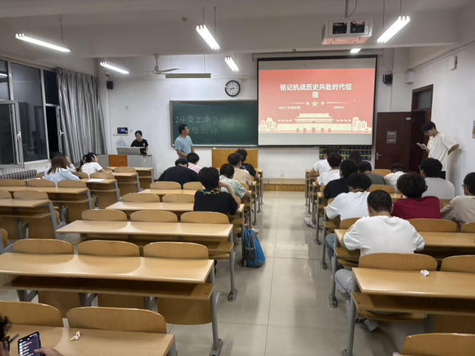 qy球友会团总支于9月7日在8教507开展了以“铭记抗战历史,共赴时代征程”为主题的示范班级团日活动,qy球友会各团支部书记及团总支委员到场观摩学习。随后各班陆续在各班班会教室开展了相关主题学习本次团日活动中,各班团支书积极响应要求,利用PPT演示、案例讲解、视频播放等多种方式提升青年团员的学习热情。同时,将理论与实际相结合,组织团员青年学习《在新时代继承和弘扬伟大抗战精神》等文章,结合内容讲解,使同学们切实学习、深入领会抗战精神内涵。