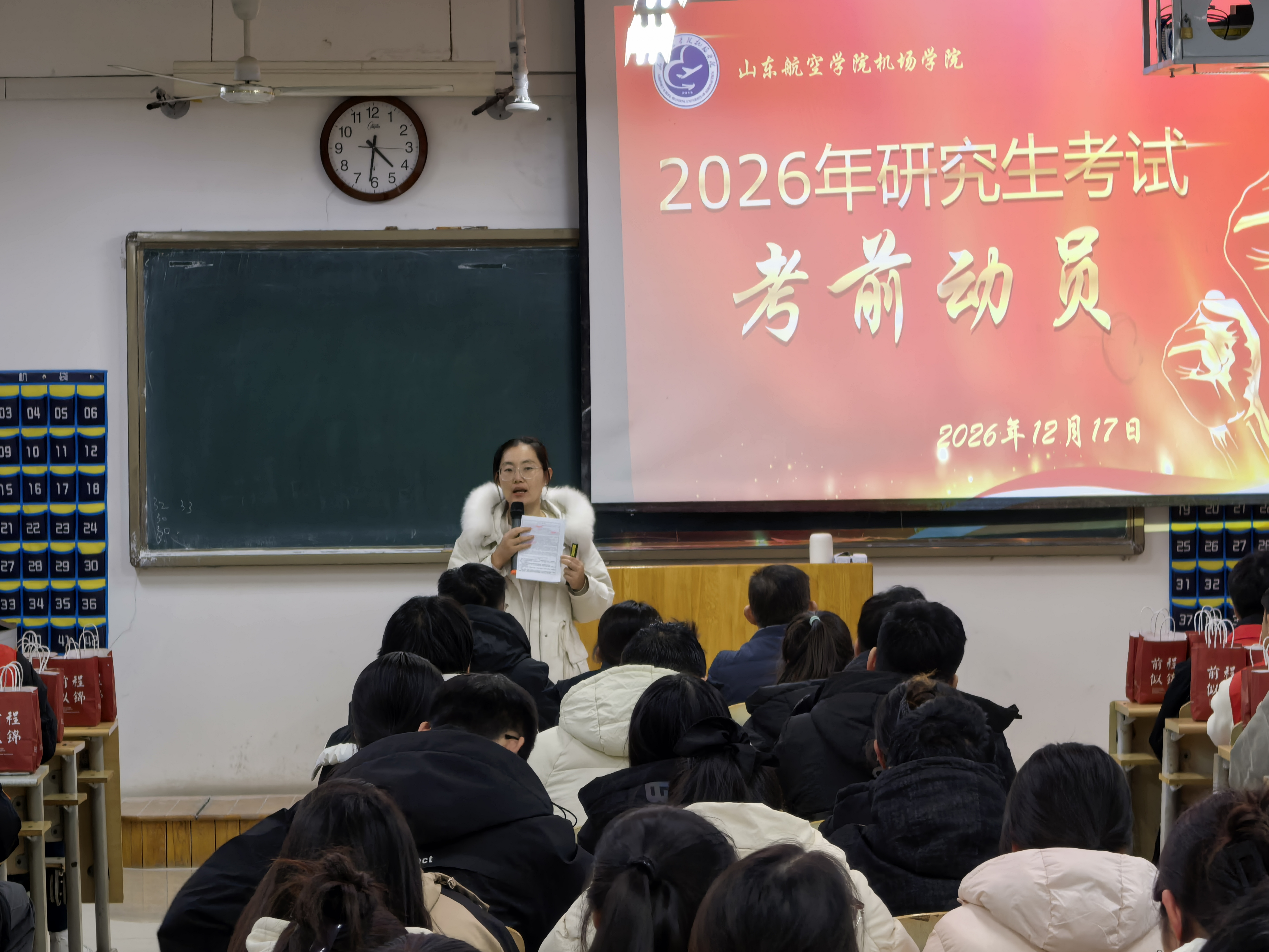 为进一步帮助考研学子调整心态、提振士气,12月17日,qy球友会2026年研究生考试考前动员大会在9#406召开。机场学院院长、党委书记、党委副书记、2026年毕业班班主任及全体辅导员出席,全体2026年考研学生和考研志愿服务人员参加。
