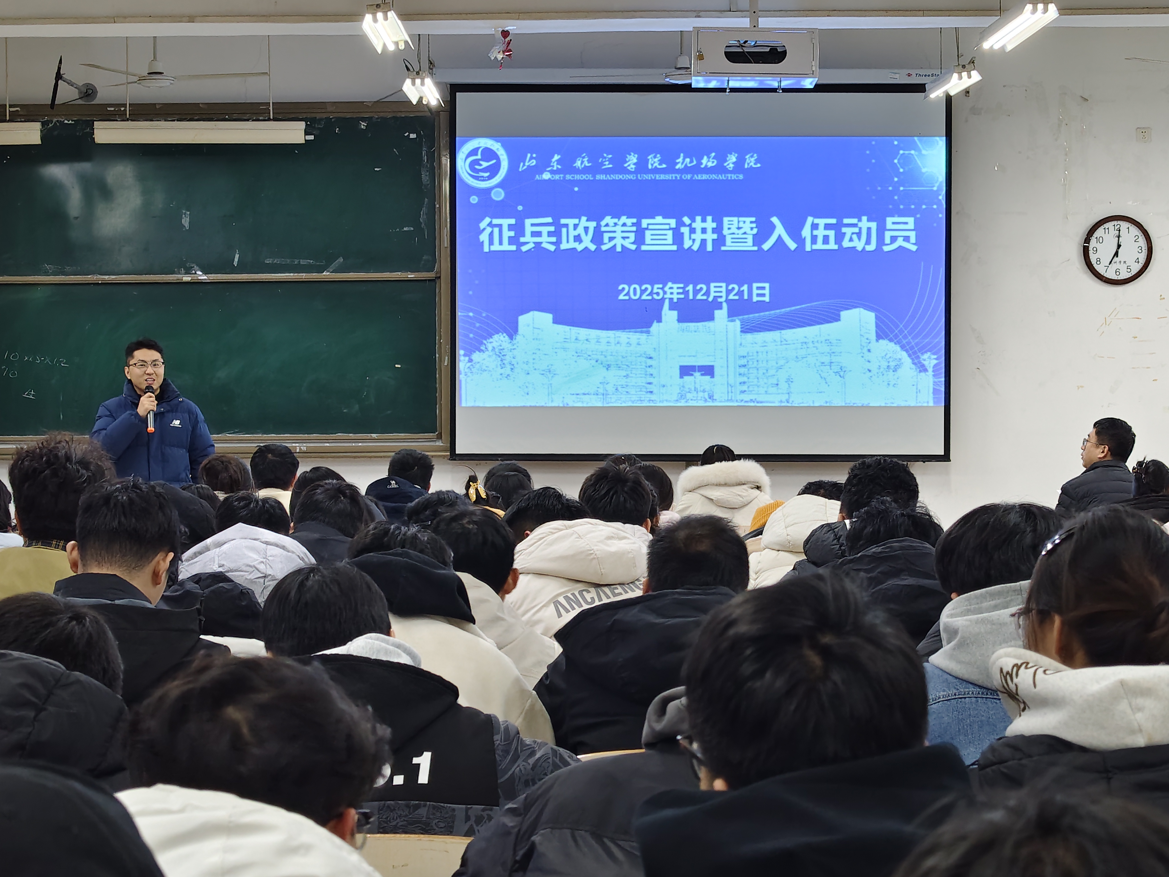 武装部刘老师以研究生考试为切入点,深入剖析升学与就业的发展逻辑,强调无论是考研还是就业,核心都是为了谋求更好的前途,启发同学们立足自身实际认真规划未来。随后,宣讲聚焦带编入伍政策展开重点解读,并向毕业生提出三点关键指引:一是认清政策红利,精准把握机遇,明确入伍可享受学费补偿代偿、退役后可竞聘专项岗位极具优势的就业选择;二是珍惜宝贵身份,主动积极尝试,鼓励所有男生都参与报名,多为自己的前途增添一份保障;三是破除认知误区,打消入伍顾虑,明确新兵连强度并非如想象中严苛,且役前训练期间可自愿放弃,实际新兵连训练强度甚至低于役前训练,同时结合父辈成长经历说明,读书深造与参军服役都是实现美好生活的可靠路径,提醒有视力矫正需求的同学务必在寒假前完成相关手术,为入伍资格做好充分准备。